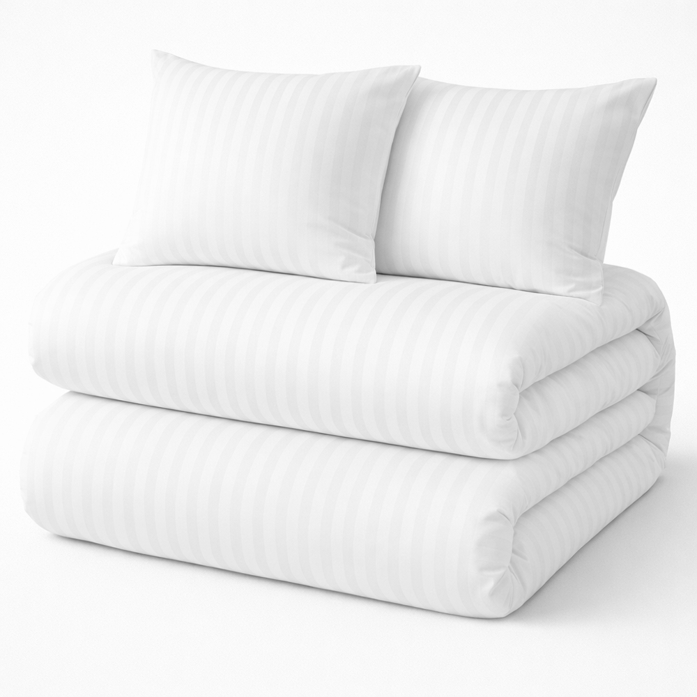 Nasza pościel hotelowa to doskonałe rozwiązanie dla obiektów poszukujących wytrzymałości i elegancji w jednym. W ofercie znajdziesz gładkie modele oraz warianty w subtelne pasy o szerokości 1 cm, 2 cm i 4 mm, które nadają wnętrzom wyjątkowego charakteru. Wszystkie produkty wykonane są z najwyższej jakości tkanin certyfikowanych Oeko-Tex, gwarantujących trwałość, odporność na intensywne użytkowanie oraz łatwość w pielęgnacji.