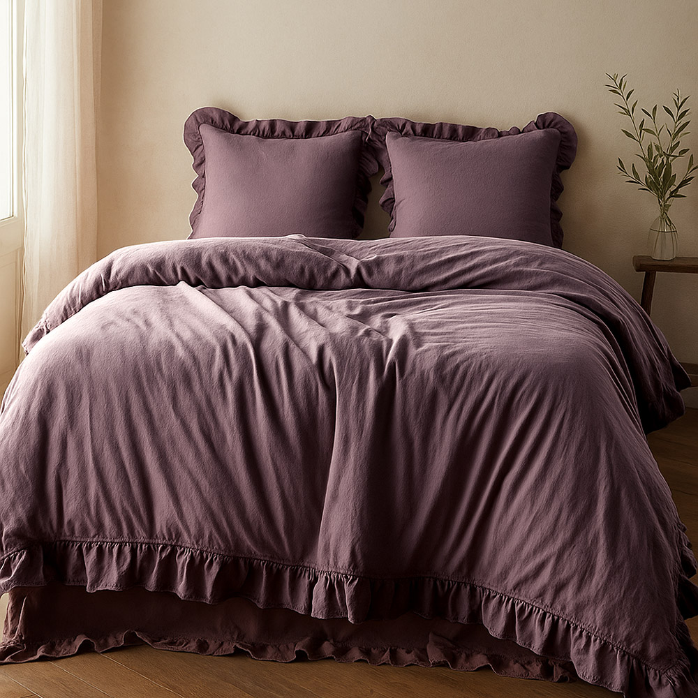 Kolekcja inspirowana naturalnością i prostotą. Tkaniny poddane specjalnej obróbce zachwycają miękkością, rustykalnym wyglądem i łatwością w pielęgnacji. Pościel i poszewki ozdobione pięknymi falbankami.